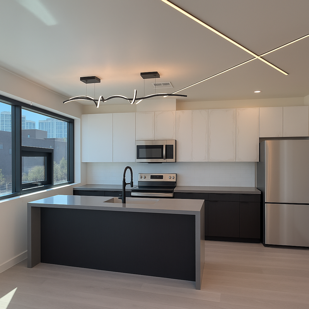 Perfectly scaled for modern city living, our one-bedroom residences offer a refined retreat in the heart of the Roosevelt Road district. These brand-new apartment homes feature open-concept layouts designed to maximize space, light, and functionality. Luxury vinyl plank flooring flows throughout, while high-end kitchens showcase quartz countertops, custom cabinetry, and stainless steel appliances. Expansive windows bring in abundant natural light, creating a bright and energizing atmosphere. Each home includes an in-unit washer and dryer for added convenience.