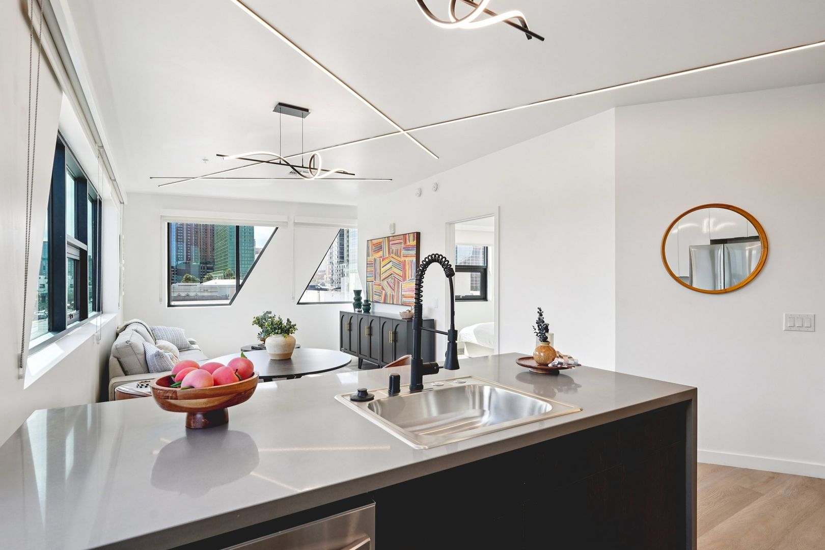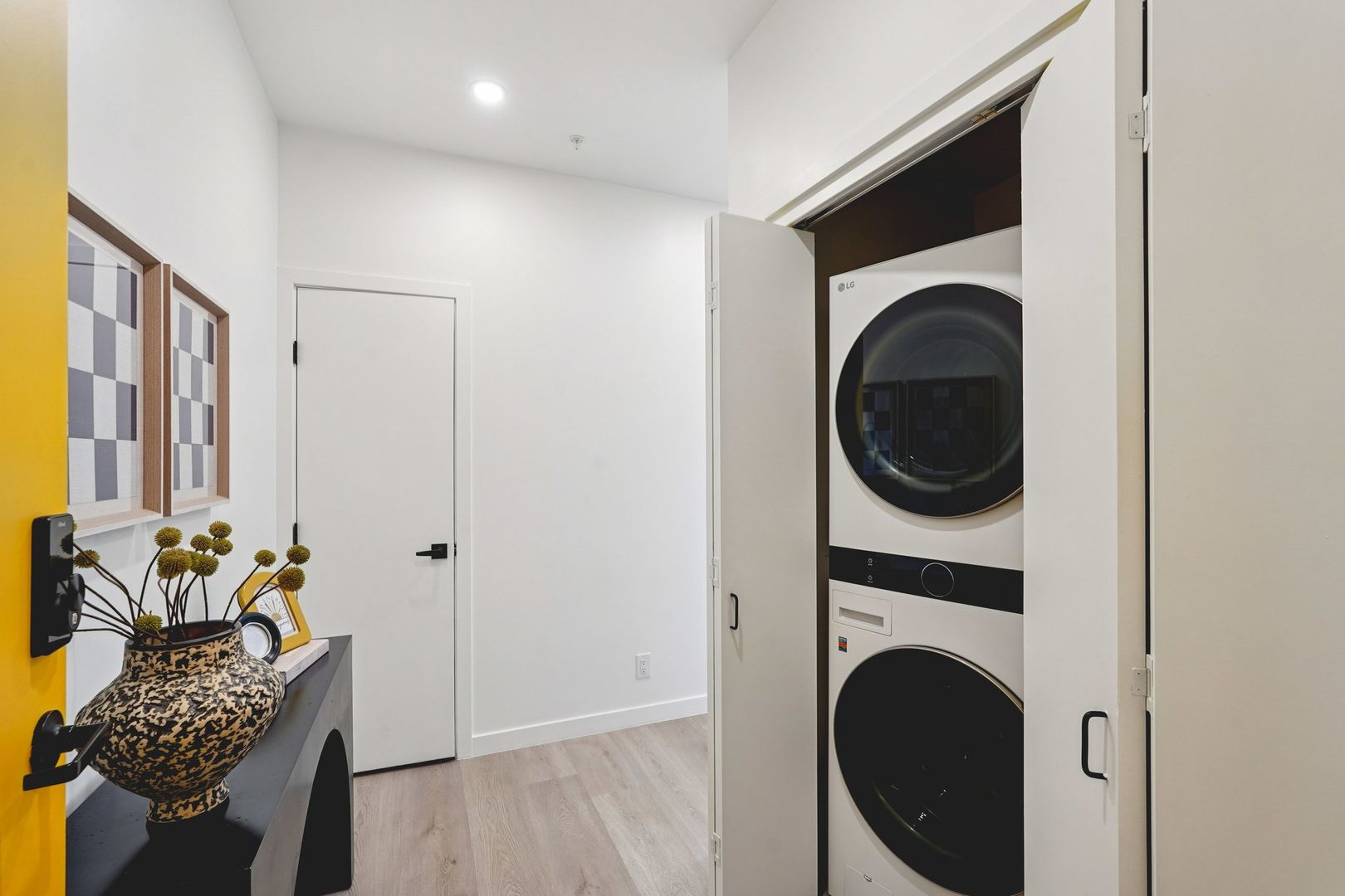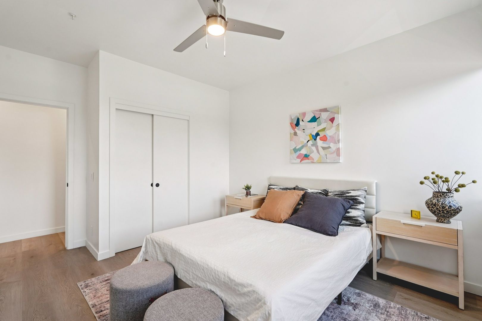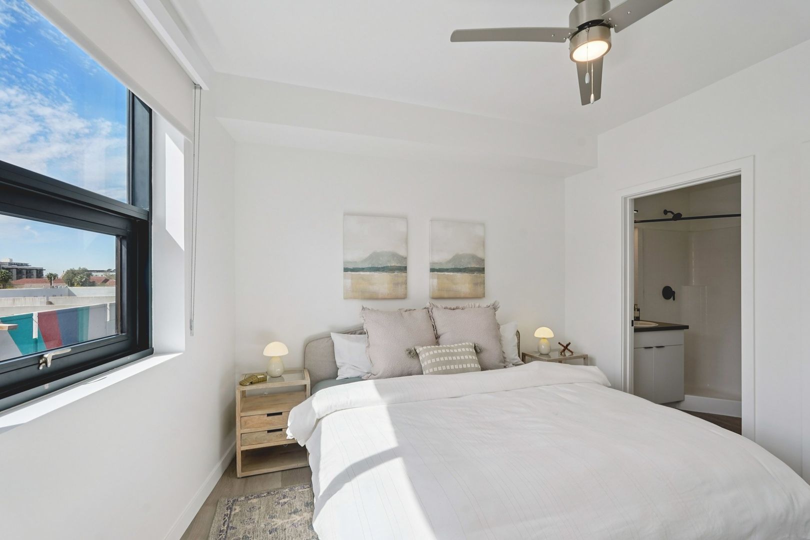 Designed for elevated comfort and privacy, the two-bedroom, two-bathroom residences offer generous living space with a refined, modern aesthetic. These brand-new homes feature well-separated bedrooms, open living areas, and high-end finishes throughout. Luxury vinyl plank flooring, quartz countertops, custom cabinetry, and stainless steel appliances create a polished yet inviting environment. With an in-unit washer and dryer and select homes offering impressive views, this layout delivers both style and functionality in one of Phoenix’s most walkable neighborhoods.